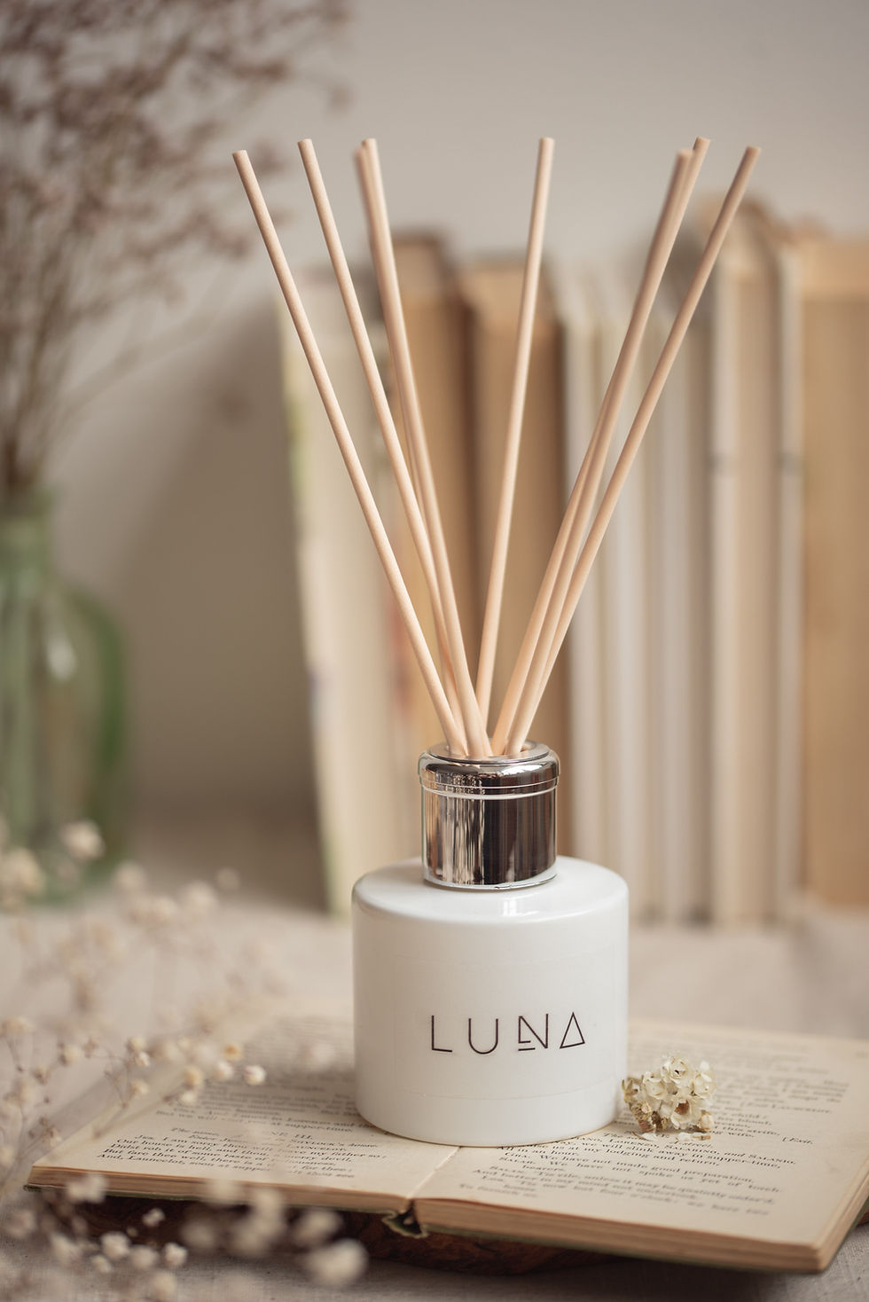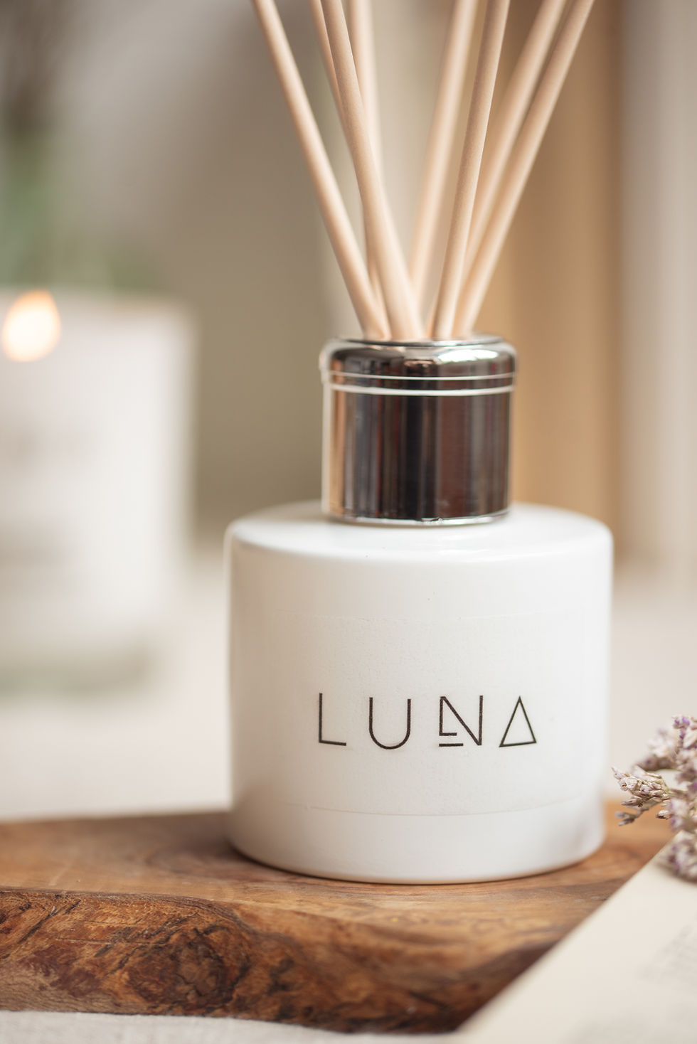 Elevate your home with the refined simplicity of our luxury reed diffuser, designed to deliver a soothing and long-lasting home fragrance. Encased in a sleek, timeless glass bottle, this reed diffuser brings an understated elegance to any decor. The reeds diffuse your chosen fragrance slowly and continuously, filling your space with a welcoming, aromatic ambiance. Ideal for pairing with our scented candles, this diffuser enhances your home scenting experience and creates a calm, inviting atmosphere in any room.